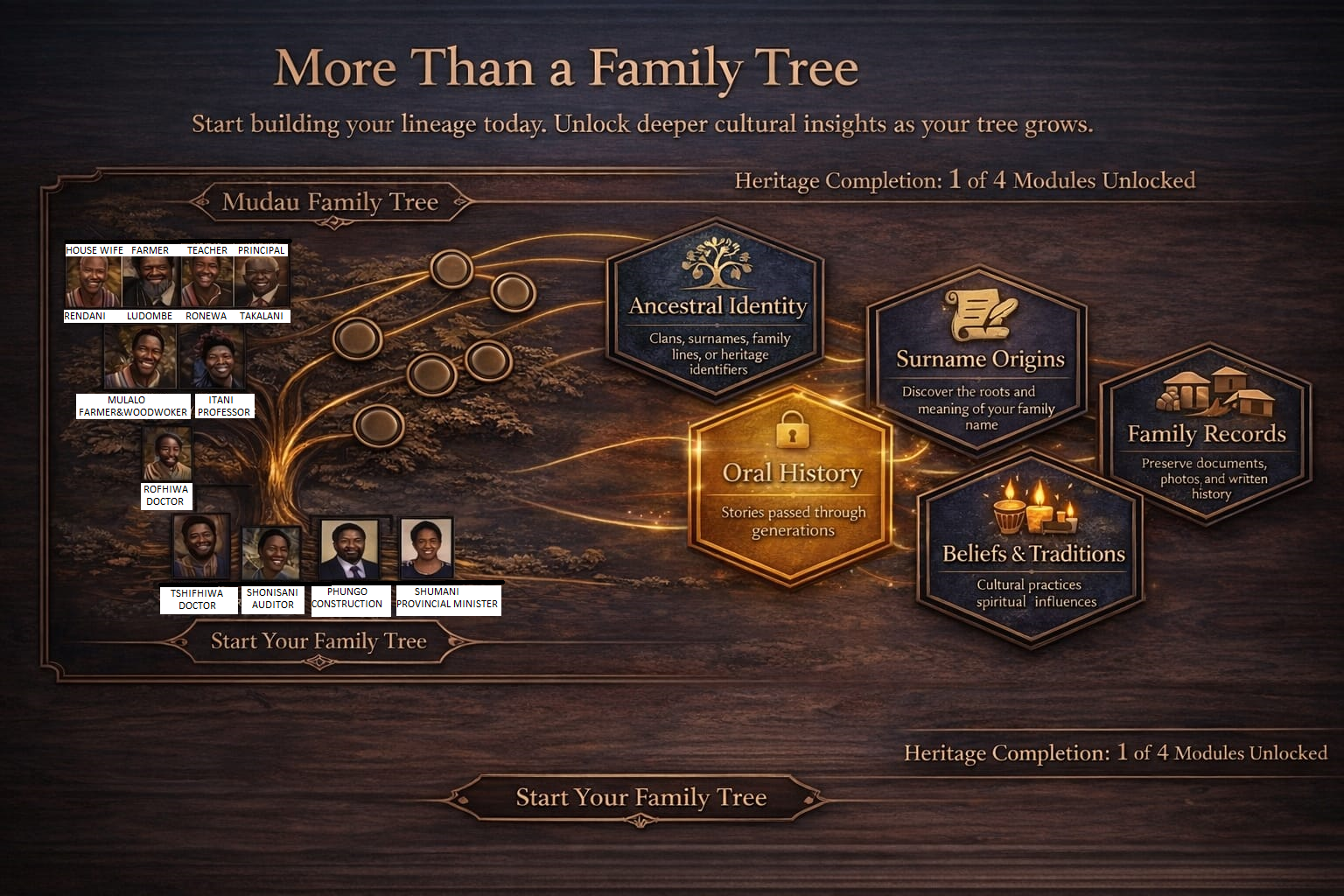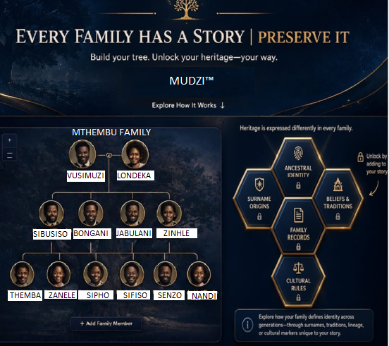 Preserving African family histories and cultural legacies, while connecting generations with care ,privacy and integrity. The vision is to connect the past , present , and future where Mudzi™ empowers individuals and families to document their roots and carry their stories forward.